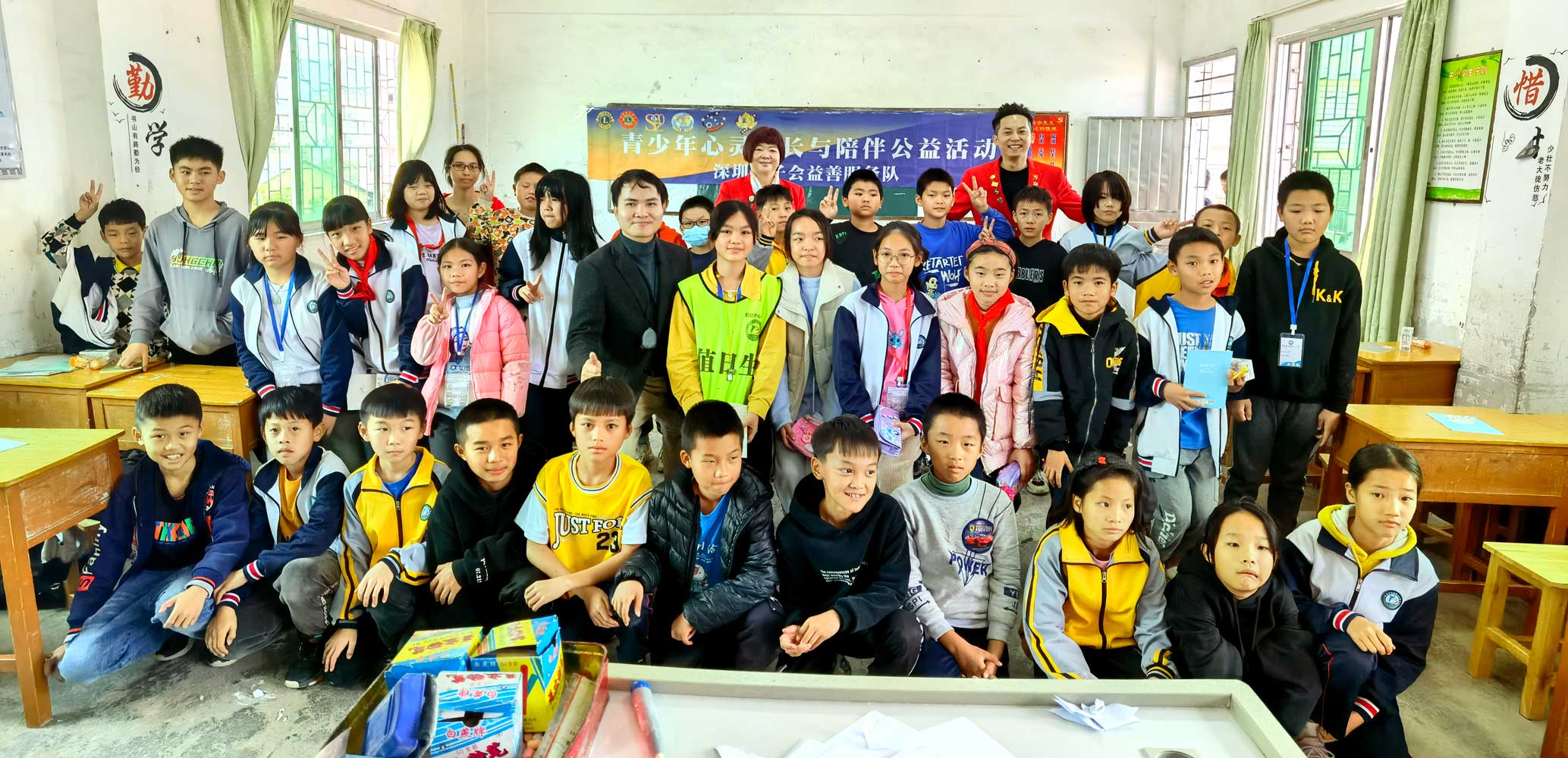 2021年11月18日、19日,深圳狮子会益善服务队前往广东省河源市紫金县柏埔镇柏埔中心小学和复兴小学进行第14至第19场【青少年心灵成长】助学活动。本次活动益善服务队共感召35笔社会募捐,累计106,210元,采购捐赠物资包括:学生课桌椅518张、冬装校服640套、儿童游乐设备1套。